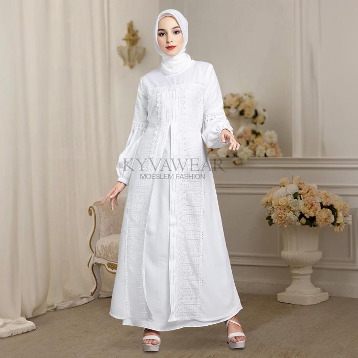 Kyva Gamis Muslim Wanita Abaya Putih Turkey Brokat Terbaru 054 Remaja Mewah - M