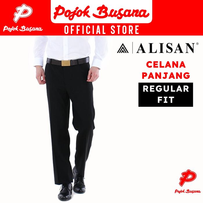 Pojok Busana Celana Panjang Formal Alisan Reguler Fit Pria - Bawahan Cowok Kantor Kerja Hitam Dewasa - Hitam, 29