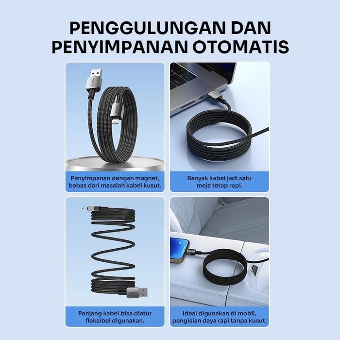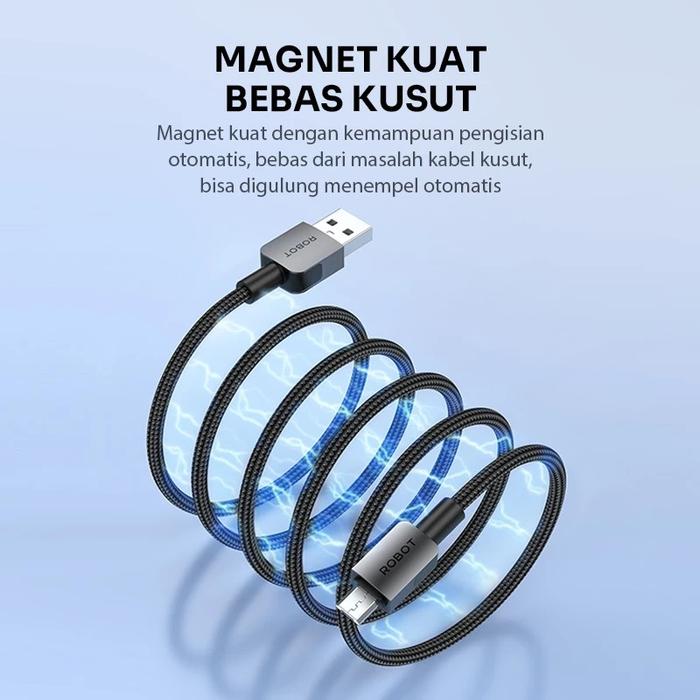 Robot Kabel Data Magnetik 1M Type C Micro Usb Lighting Anti Kusut Data Cable Rxm100/Rxl100/Rxc 100/Rxcc100/Rxcl100 Origi