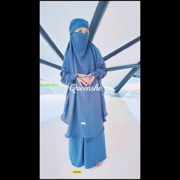 Gamis Anak Terbaru Syahira 3In1 Khimar2-15Th By Queenshe Fashion - M, Army