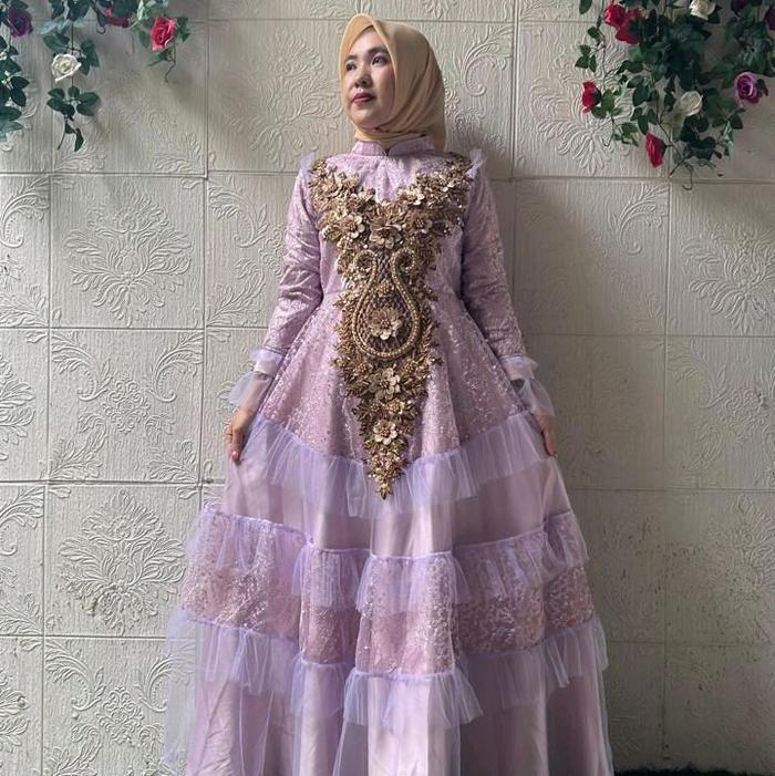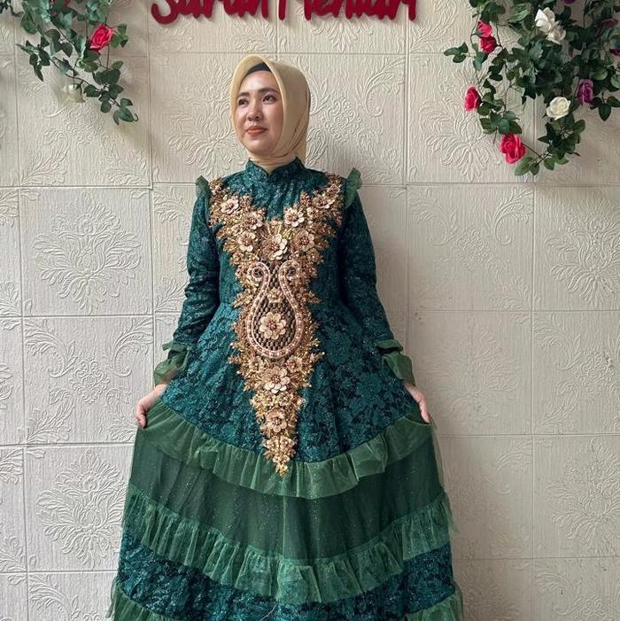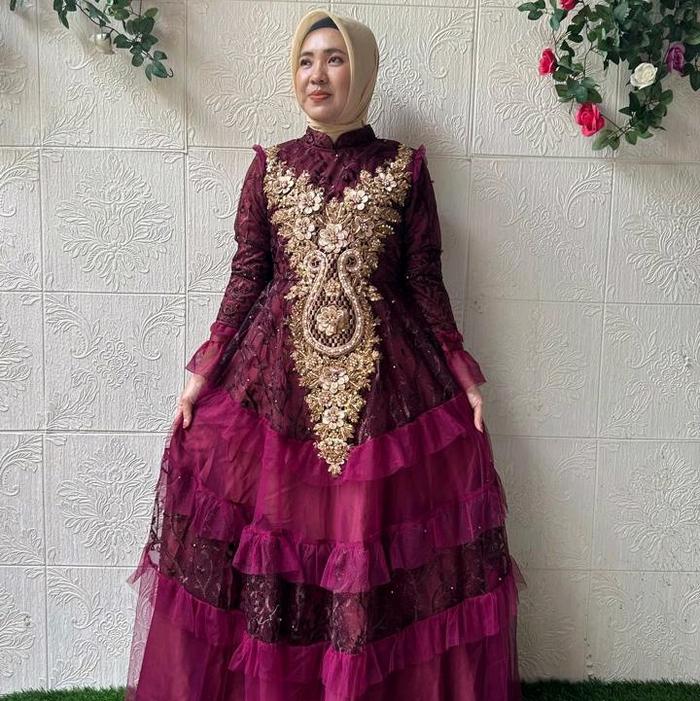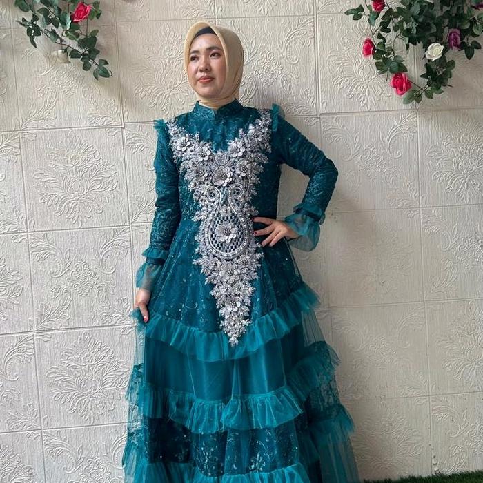Dress Ahhumaira Brukat Tille - Biru, S Ld 96