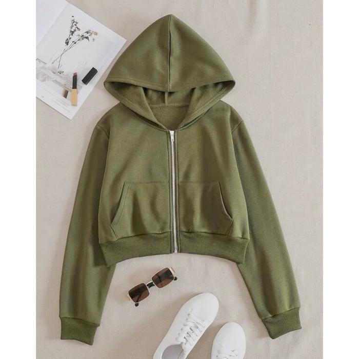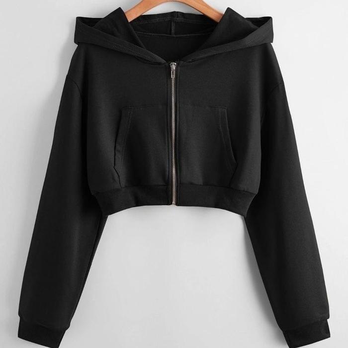 Basic Crop Polos Premium High Quality Jacket Crewneck Sweater Hoodie Crope Wanita Kekinian Korean Style Lengan Panjang F
