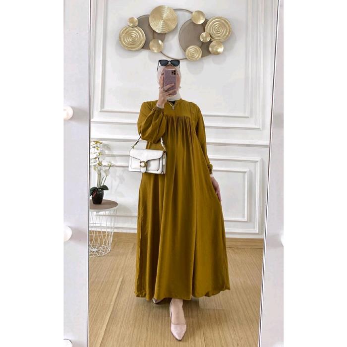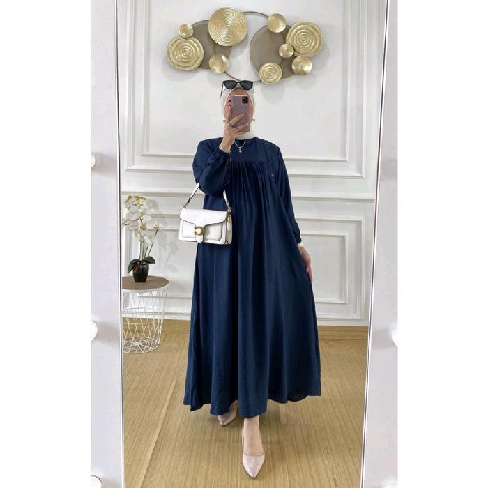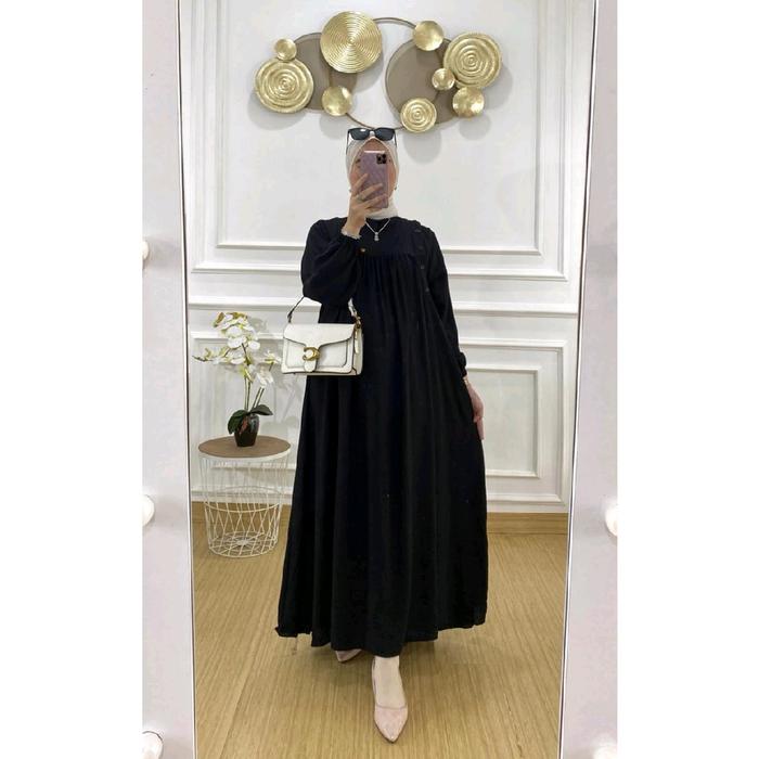 Mazaya Dress Gamis Muslim Wanita Polo Linen Polos Cantik Kekinian - Hitam, All Size