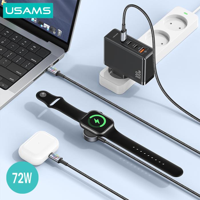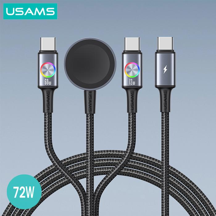 Usams Sj754 Kabel Data Fast Charging 72W Type-C To Type-C + Watch Wireless Led 1.2M Alumunium Alloy Kompatibel Dengan Ap