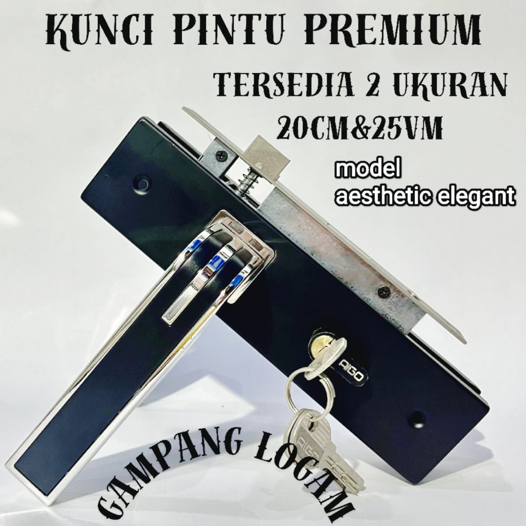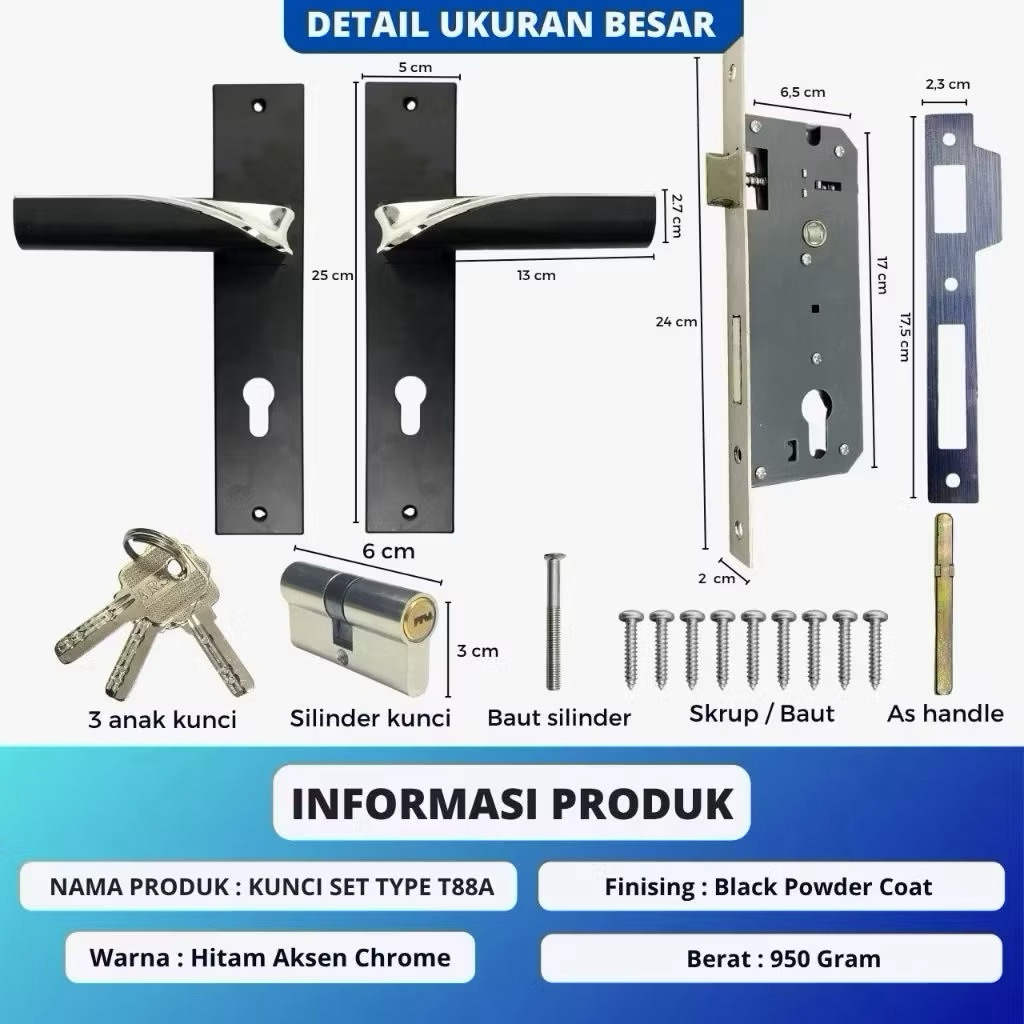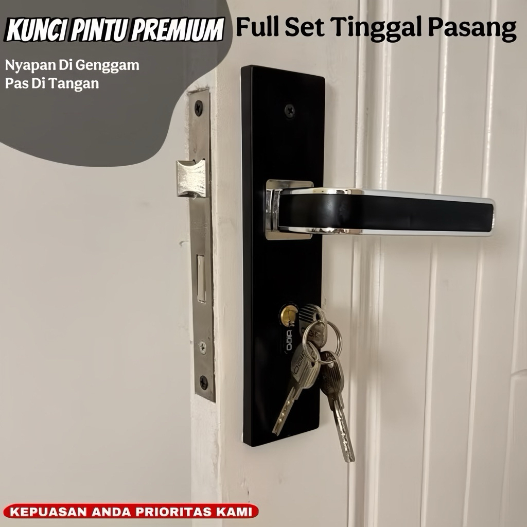 handle set kunci pintu hitam ring silver minimalis ukuran tanggung 20cm besar 25cm gagang handle kamar utama