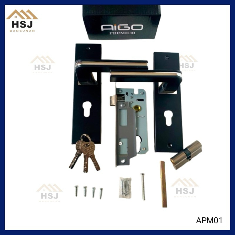 Kunci Pintu Rumah Handle / Selot Kamar Tidur PREMIUM AIGO / Gagang Minimalis Lengkap / Handle pintu 20 cm
