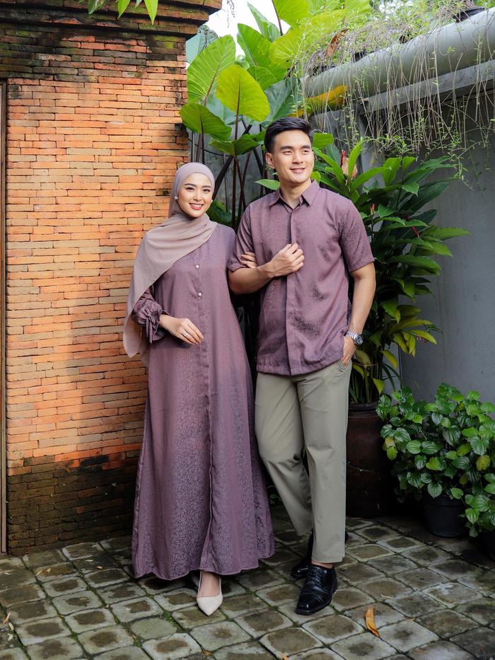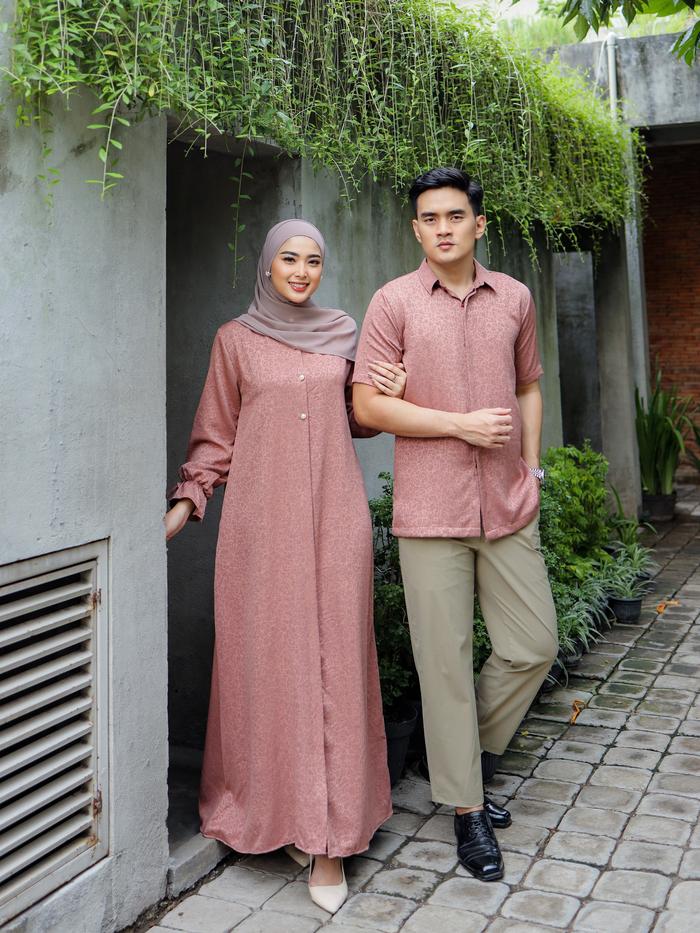 Anjali Setelan Couple Pasangan Keluarga Motif Coral Sarimbit Lebaran Kondangan Setelan Gamis Koko Dewasa - Gamis Coral
