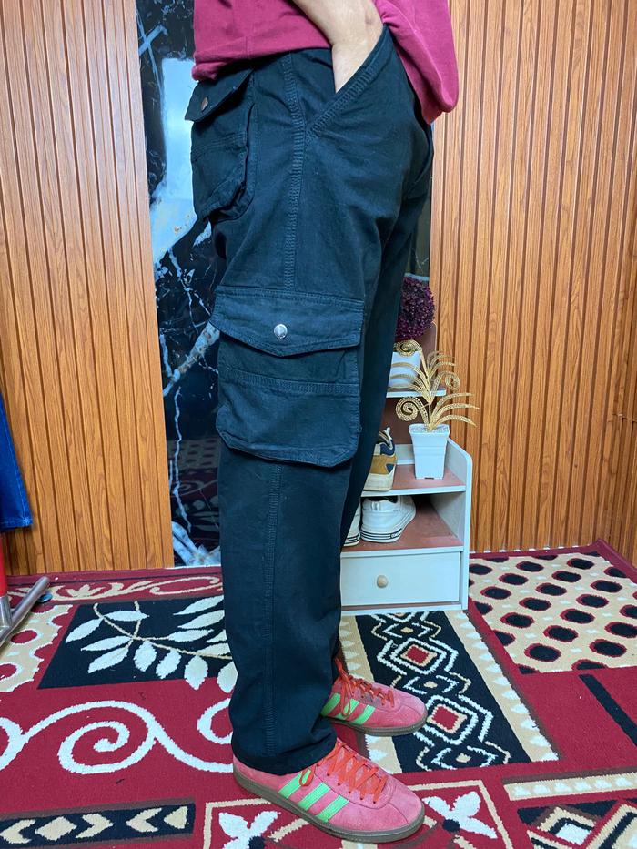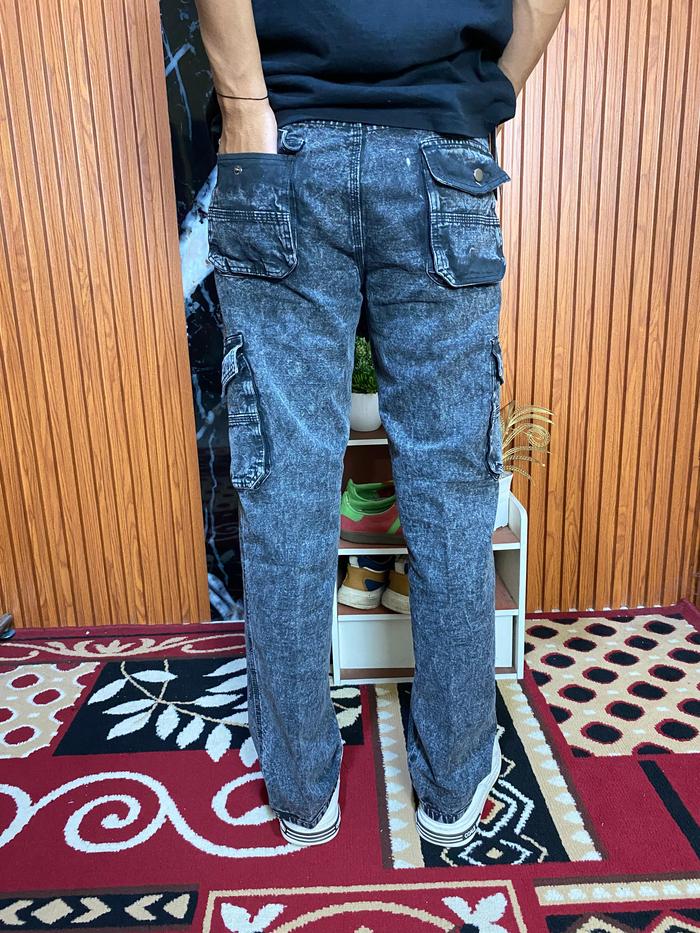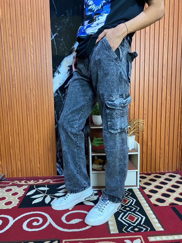 Celana Cargo Panjang Standar Reguler Fit Bahan Semi Jeans Tebal Distro Denim Abu Grey Nyaman Pria - Army, 27/28