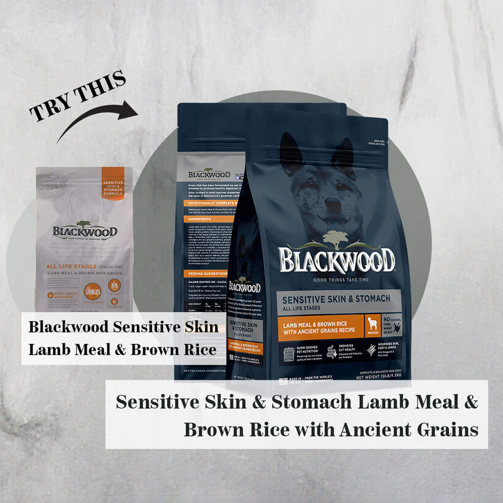 [SUNNYPAWS] BLACKWOOD Zinpro Sensitive Skin Stomach Lamb Meal 10.91 KG 24 LBS Brown Rice Ancient Grains All Life Stage M
