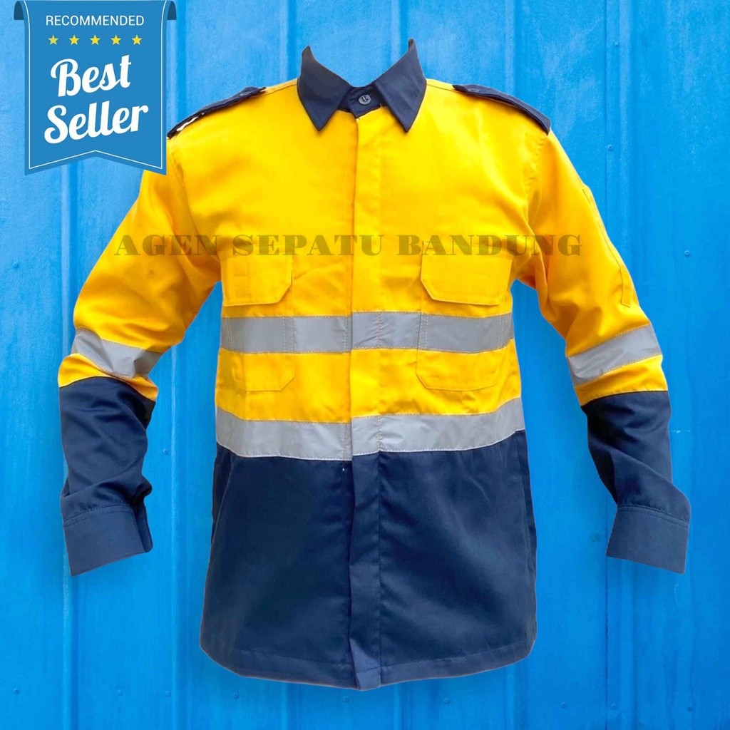 AGEN Seragam safety Baju Safety Lengan Panjang Katelpak Wearpack Atasan Safety Kombinasi 2 Warna Kemeja two tone