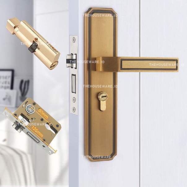 Set Gagang Pintu Dan Kunci Semua Aluminium Vintage Europian
