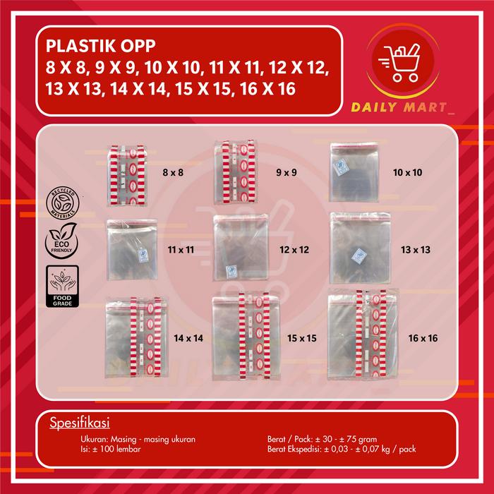 Plastik Opp Roti 8X8 9X9 10X10 11X11 12X12 13X13 14X14 15X15 16X16 Seal Bening Isi 100 Lembar / Plastik Lem Rekat Roti S
