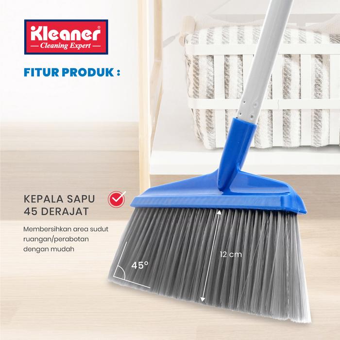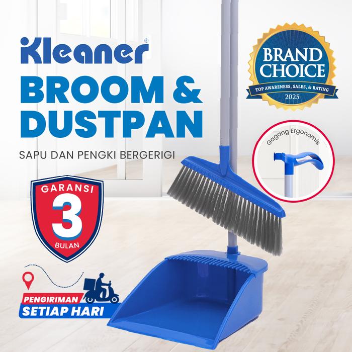 Kleaner Sapu Lantai Dan Pengki Plastik Sisir Set / Broom Set Dustpan Plastik Bulu - Biru