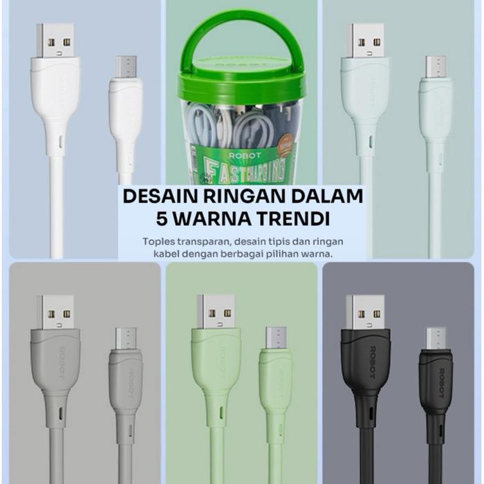 Isi 20 Kabel Data Micro Usb/ Type C/ Lightning Fast Charging 100Cm Satu Toples Isi 20Pcs Robot Rbm Rbc D306M D306C D30