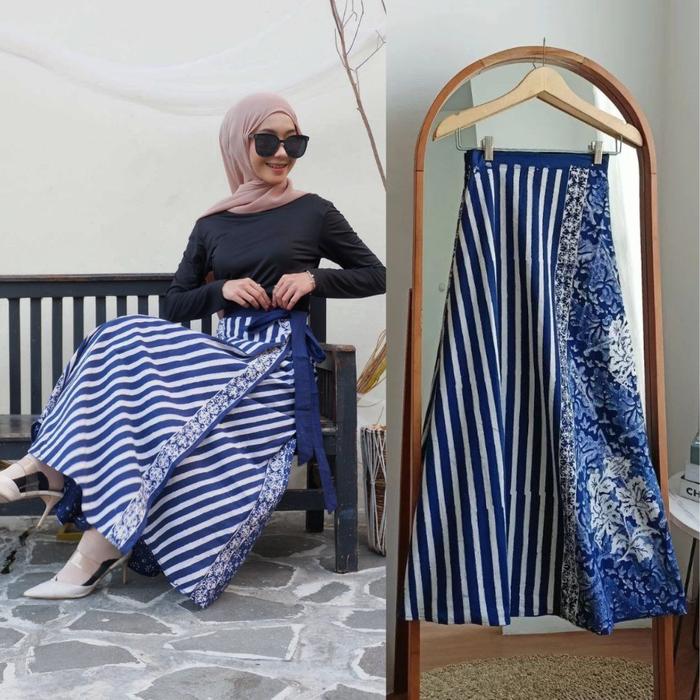 Rok Lilit Batik Motif Seling Rok Katun Premium Handmade Jumbo Santai - Motif Salur