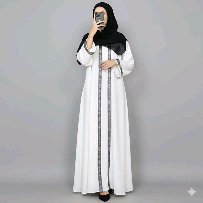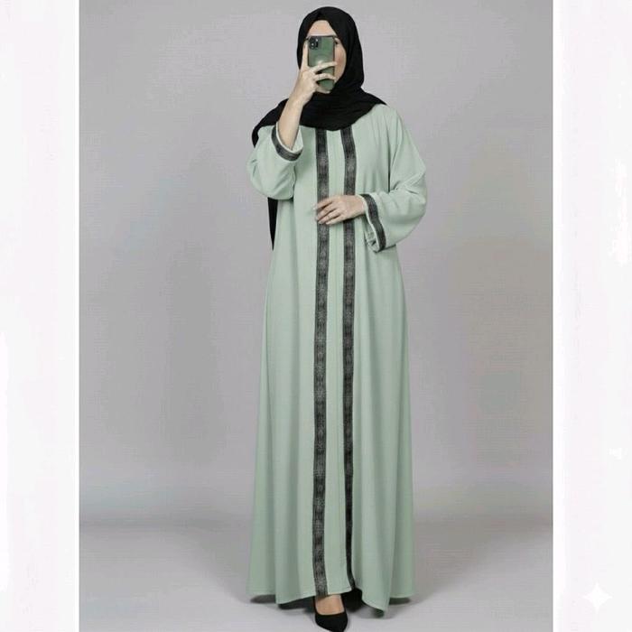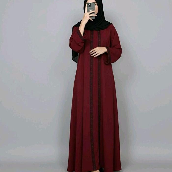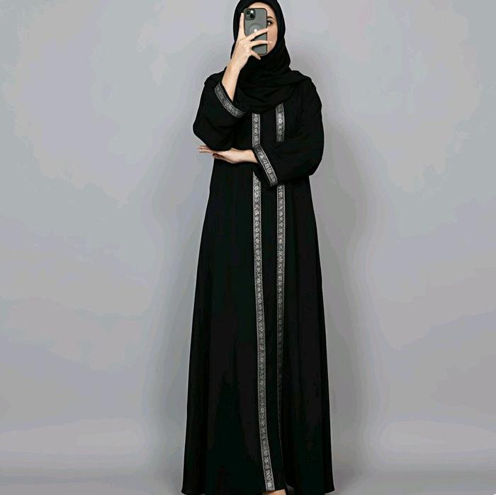 Abaya Arabic Madinda Style Turkey // Muslim Gamis Dress Turki Bordir Dewasa Maxi Pesta - Hitam, M
