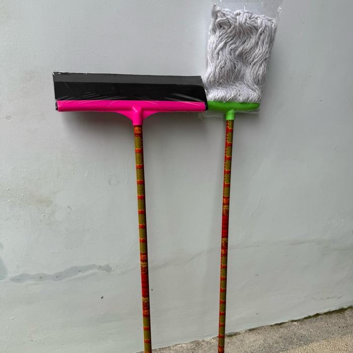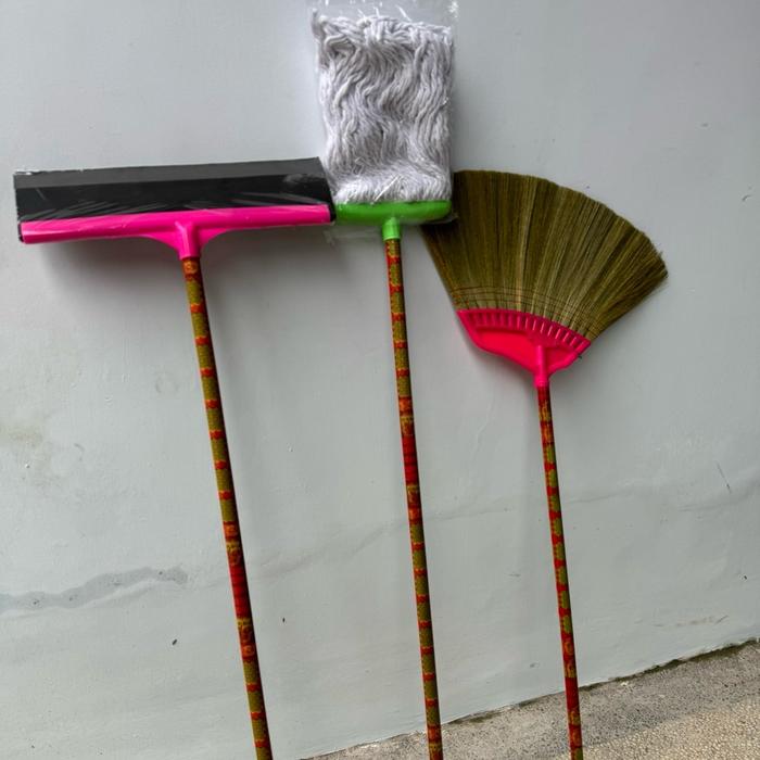 Paket Sapu 3 In 1 Sapu Pel Wiper, Alat Bersih Plus Gagang Kayu Pilih Sesuai Variasi - Paket Sapu Rayung, Pel, Wiper