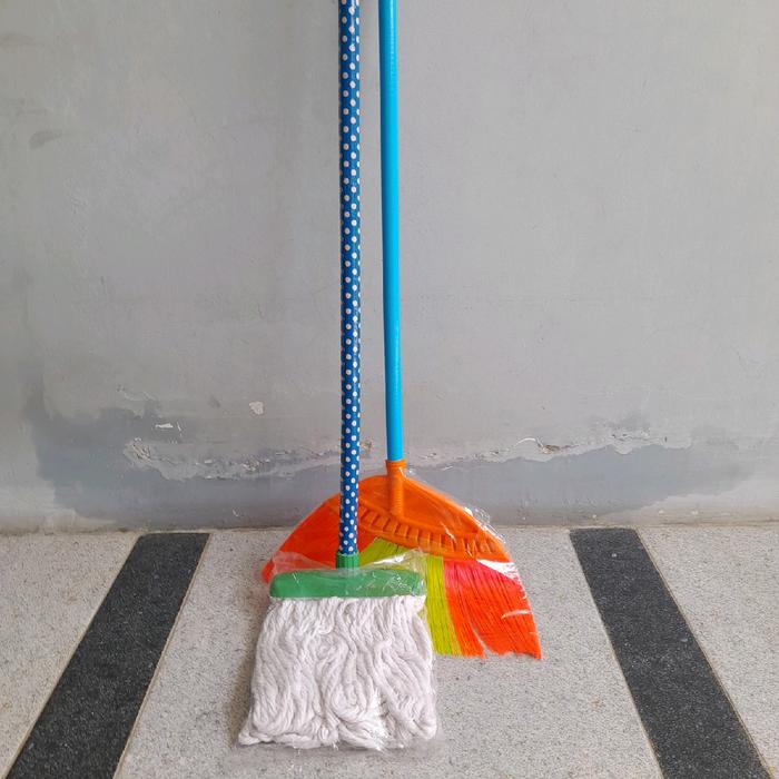 Satu Paket Sapu Dan Pel 2 In 1 Anti Rontok Lembut Dapat Disesuaikan Kayu Lantai Bulu