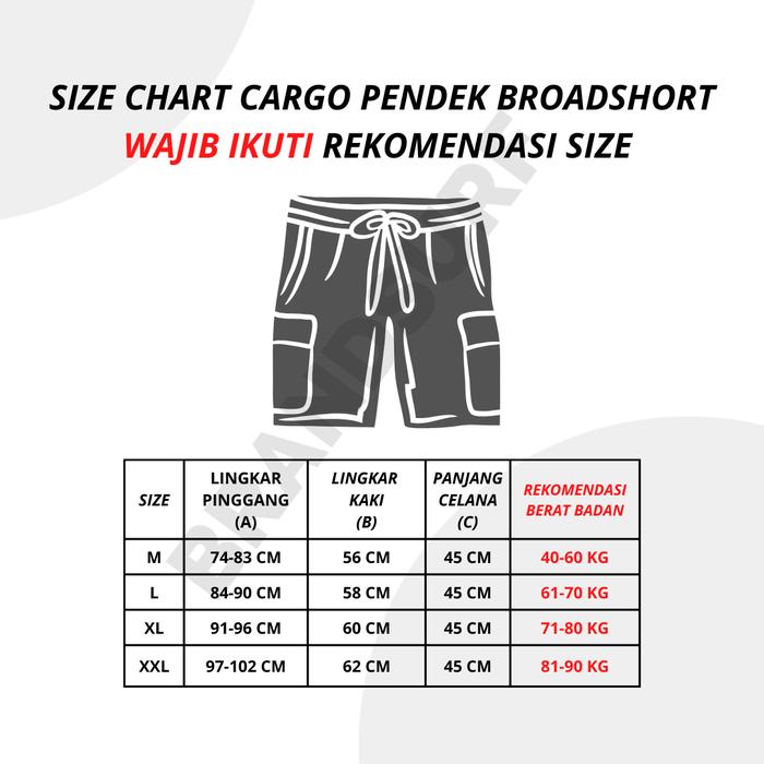 Boardgo, Celana Cargo Pendek Broadshort Seris Semua Warna. Cargo Pendek Broadhsort Brandsurf, Cargo Pendek Tali , Teba
