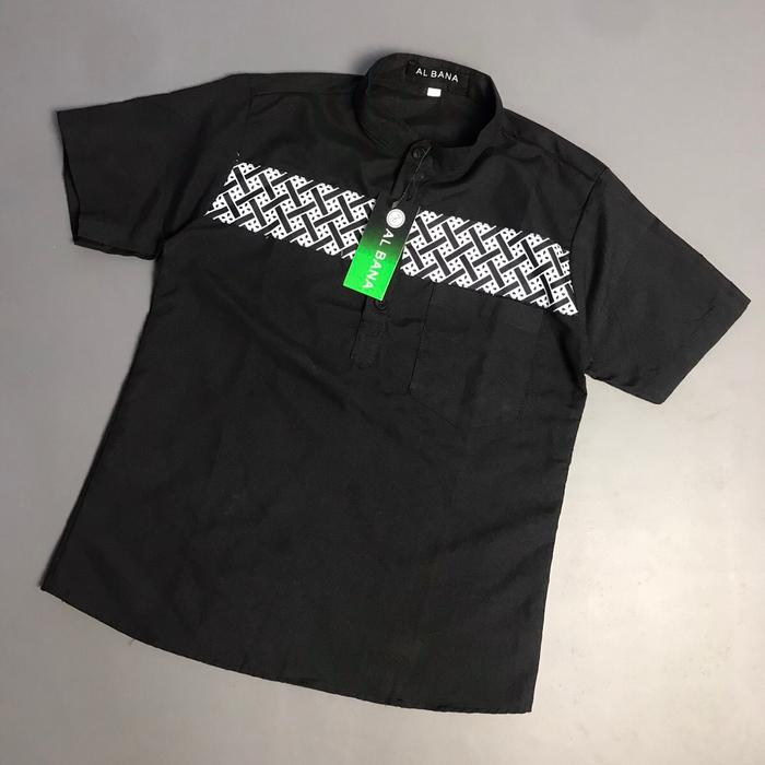 Kurta Albana Anak Lengan Pendek Katun Kain Muslim Koko - Hitam, 13