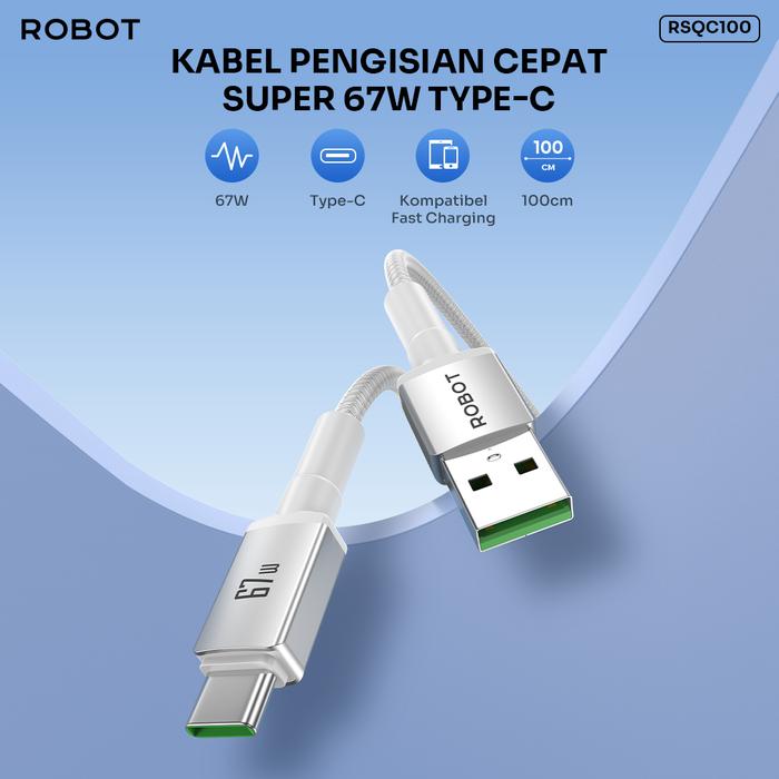 Robot Kabel Data Rsqc100 Fast Charging Usb To Type C 67W Data Cable Original - Garansi 1 Tahun