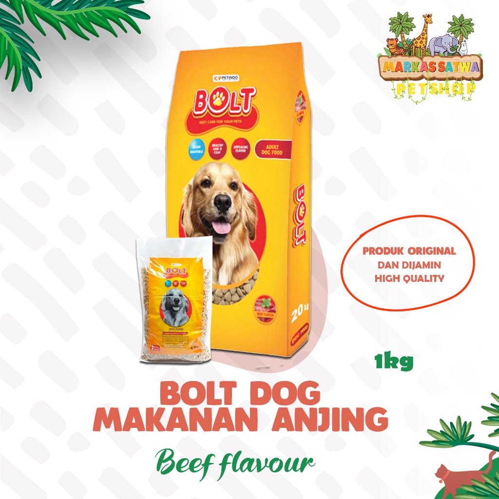 BOLT DOG 1 kg Rasa Beef Atau Lamb Makanan Anjing Kering Premium Dan Murah