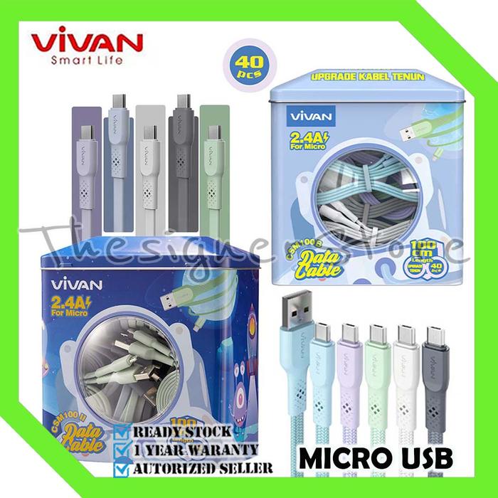 Vivan Csm100 Kabel Data Micro Usb Fast Charging 2.4A Data Cable For Android Toples Isi 40Pcs - Csm100B Toples