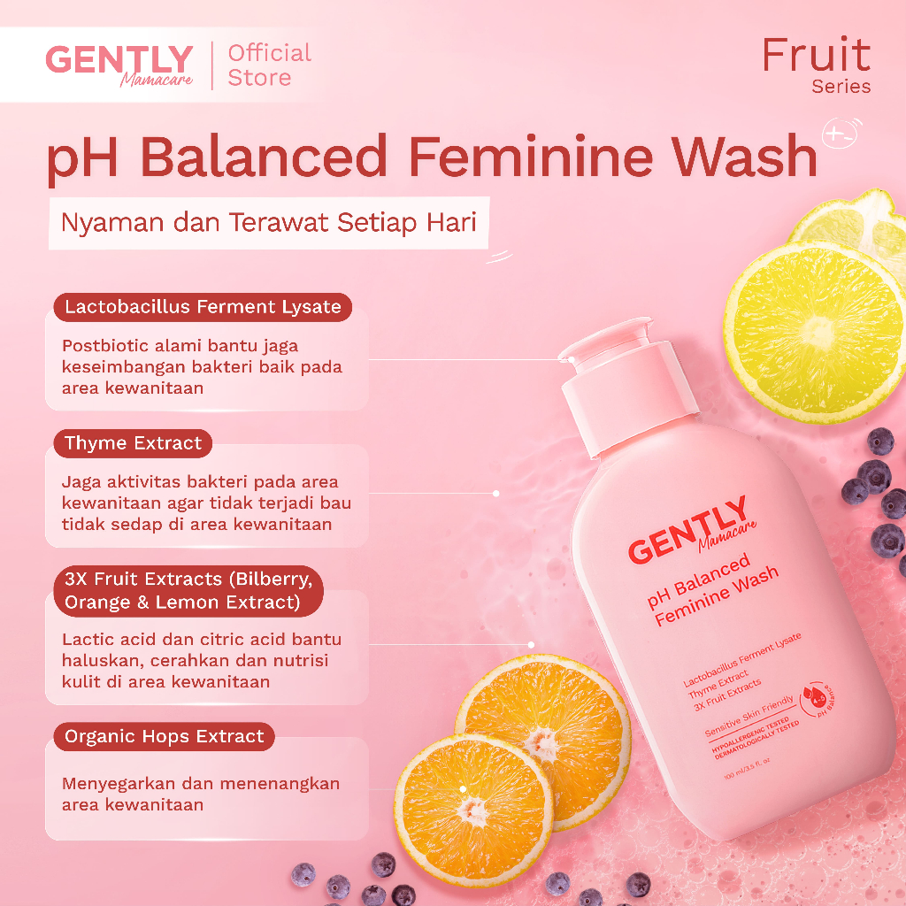 GENTLY Mamacare pH Balanced Feminine Wash Fruit Series with 3x Fruit Extract | Pembersih Kewanitaan untuk Mengurang