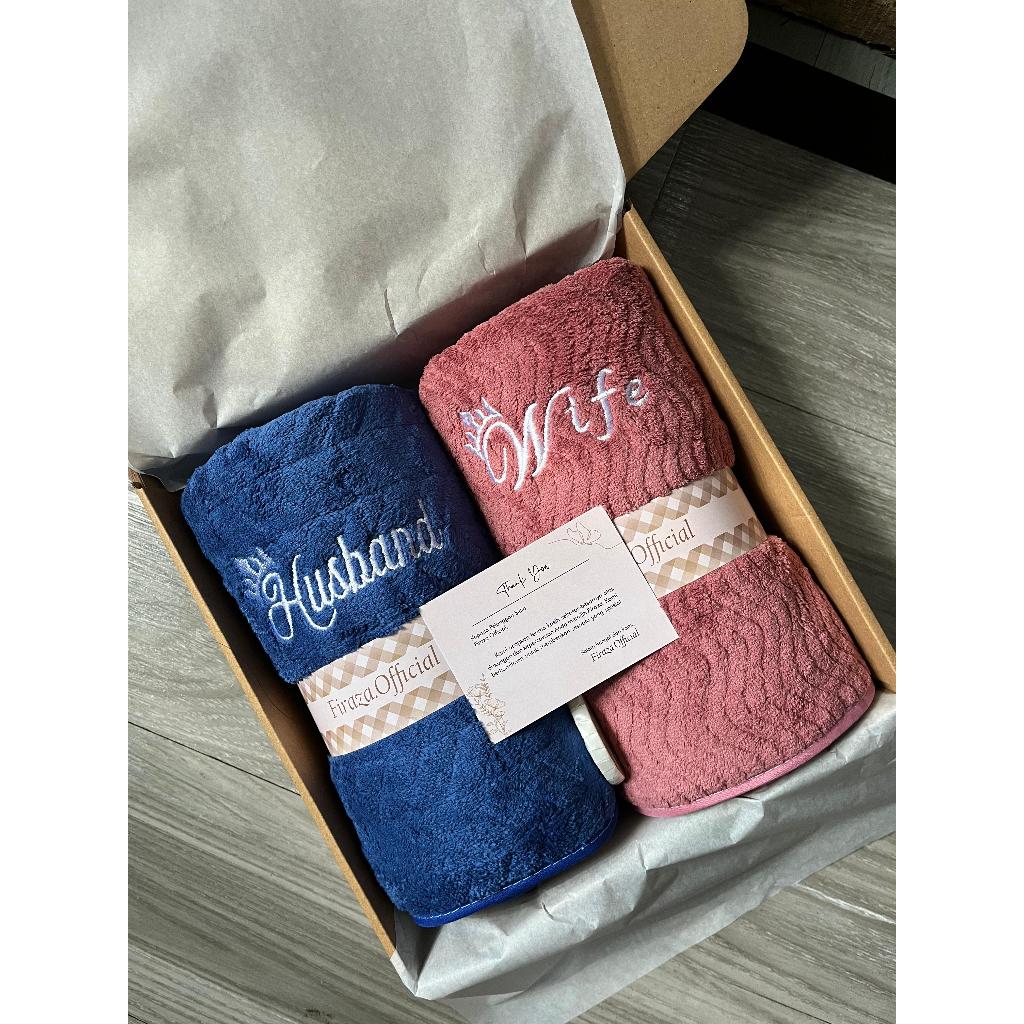 Firaza Official - Hampers Handuk Couple Pernikahan Bordir Husband Wife - Kado Souvenir Pasangan Wedding Free Kartu
