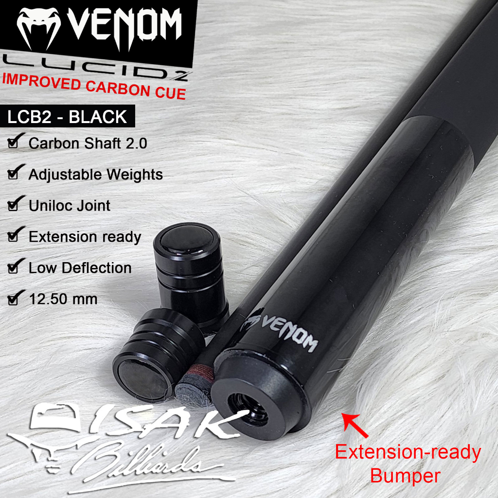Venom Lucid Carbon LCB Black Cue - Uniloc Extension Bumper Stick Billiard