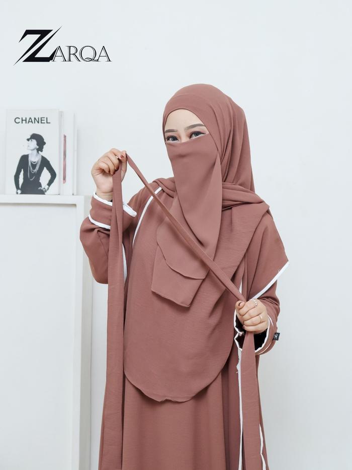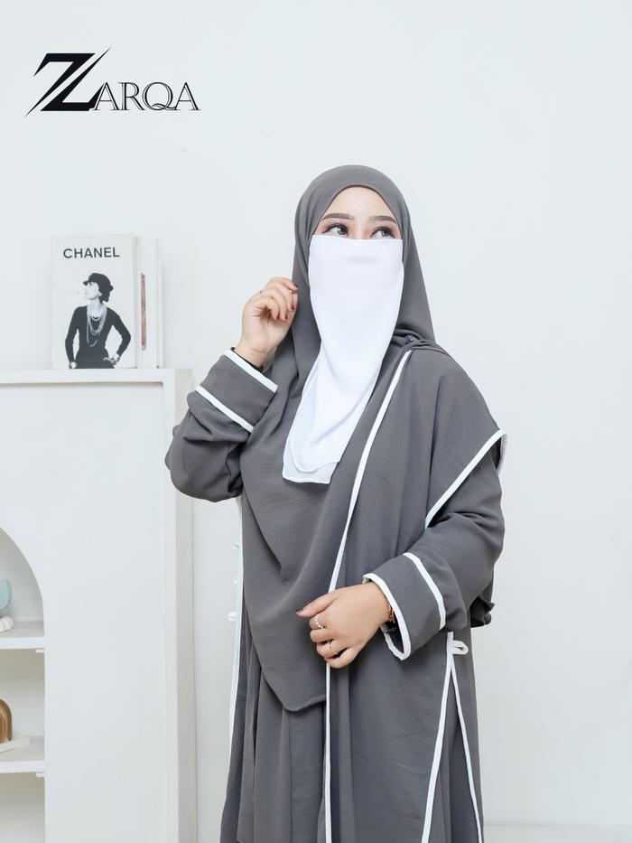 Zarqa - Maura Abaya Set | Gamis Turki Motif List Putih 4 In 1 Inner Outer Pashmina Ikat Pinggng Airflow Crinkle Muslim W