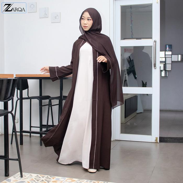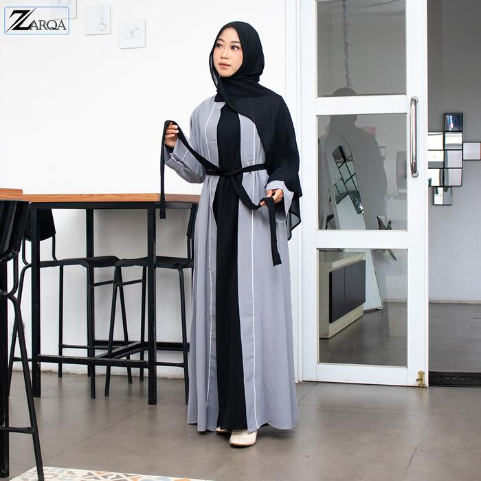 Zarqa - Luna Gamis 2 Abaya Sabrina Anti-Uv Mewah Maxi Wanita Dress Two Tone List Bisban Polos Muslim Turki Dewasa Remaja