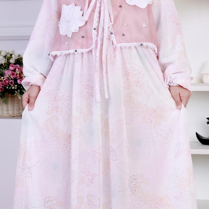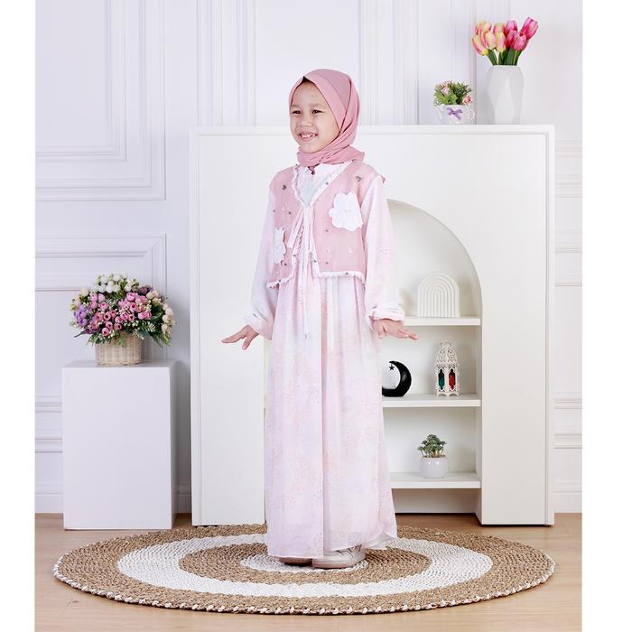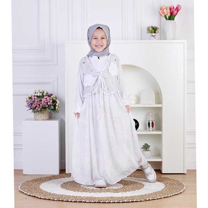 Dungdungkids Gamis Anak Bianca Ceruty Outer Organza Payet Bordir Free Pashmina 3 - 14 Tahun - Abu, S 3 - 4 Tahun