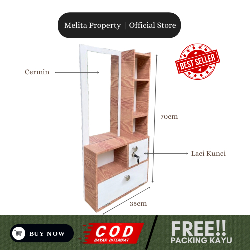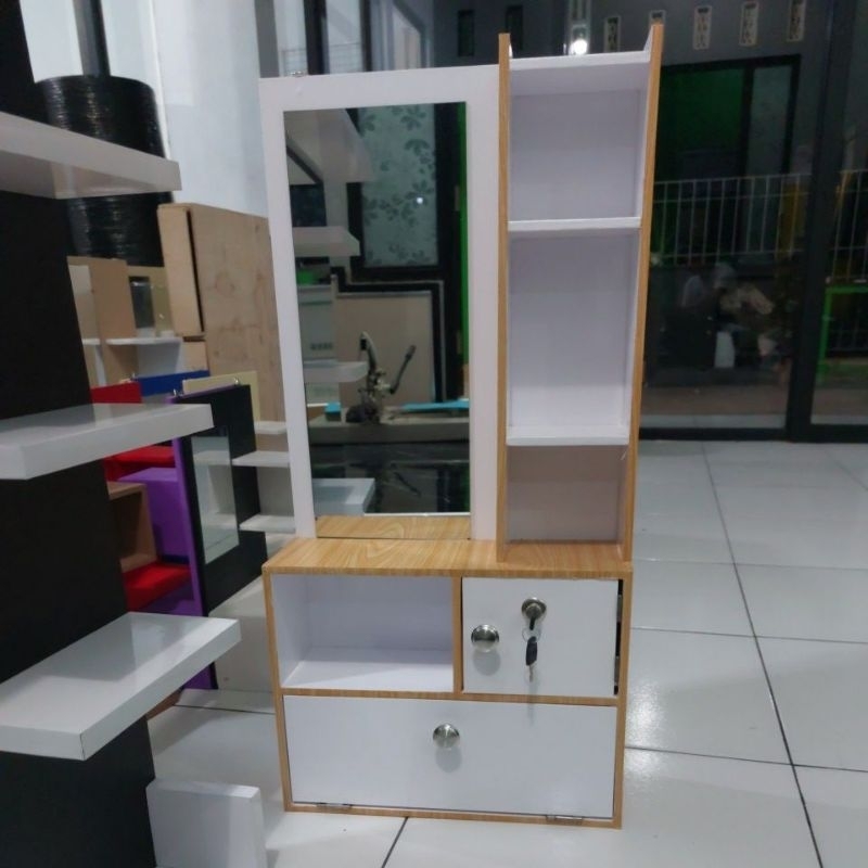 Rak Rias Cermin gantung Ukuran 70 x 35 Cm motif Serat Kayu Putih