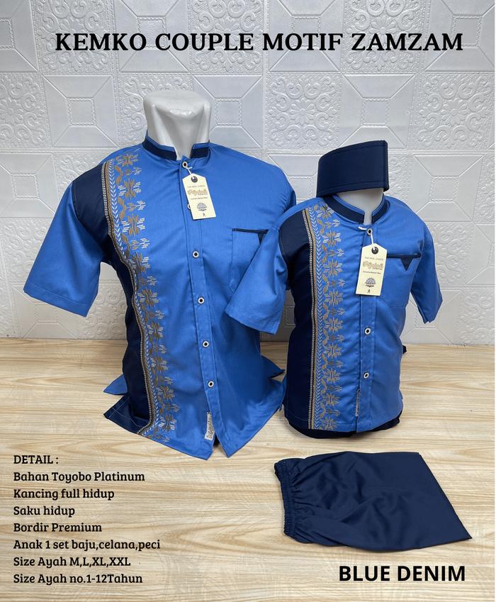 Agnina Kemeja Koko Couple Ayah Anak - Atasan Muslim Pria Bordir - Sarimbit Lebaran Kembaran Murah - Navy, Dewasa Ayah Sa