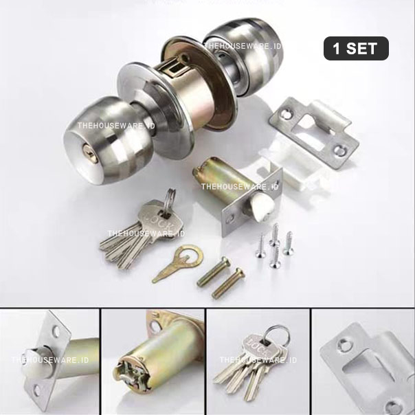 Kunci Pintu Kamar Mandi Bulat Onat / Tarikan Gagang Handle Putar Stainless