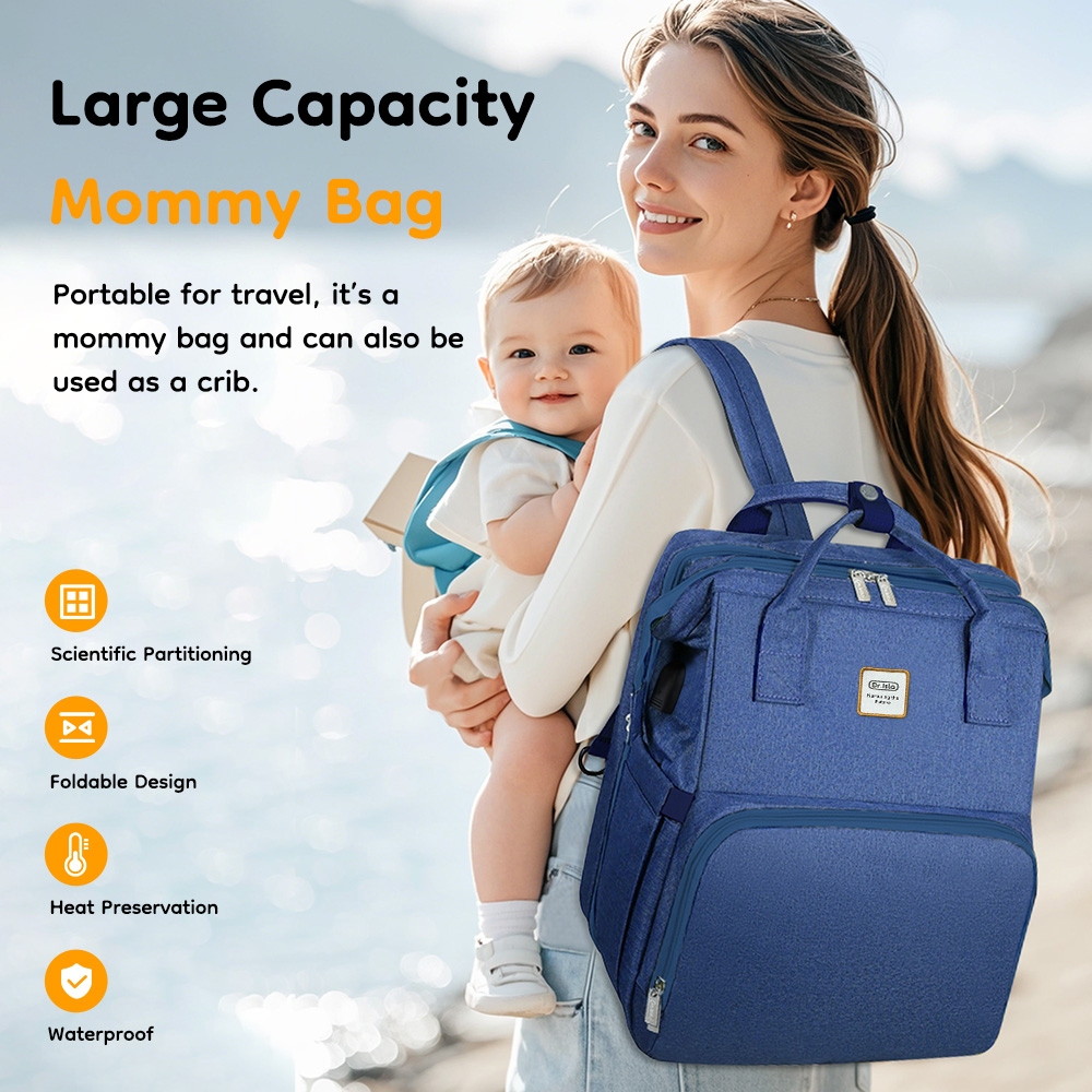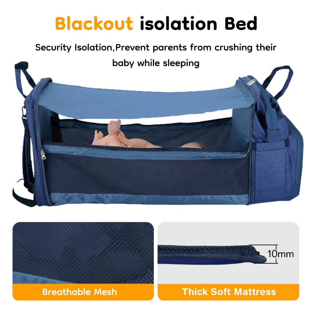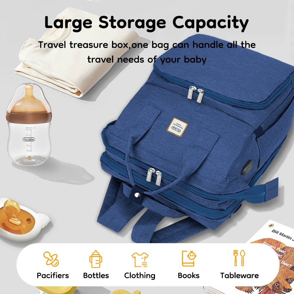 Dr.isla Tas Bayi Multifungsi Tempat tidur lipat Baby diapers bag Perawatan tas Perlengkapan Ransel Backpack Canvas Anti