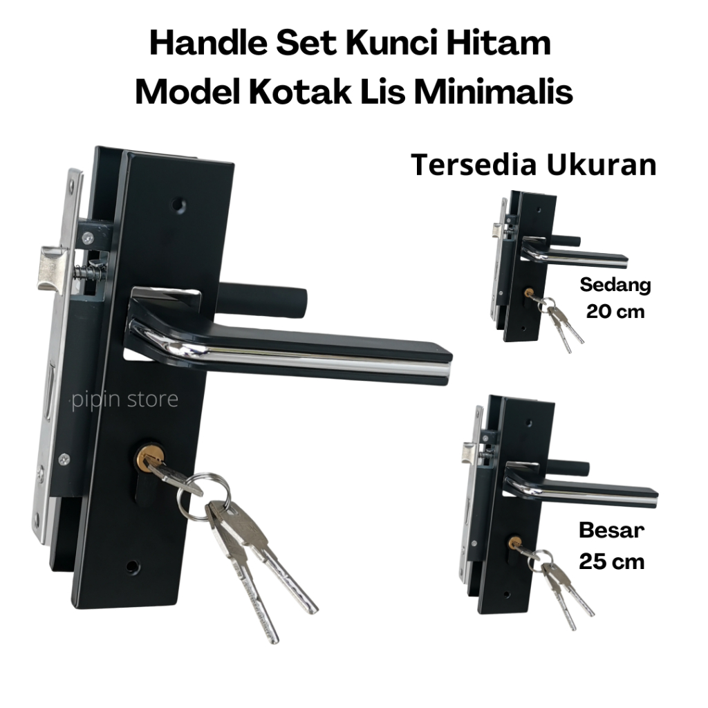 Handle Set Kunci Pintu Hitam Ring Silver Ukuran Besar 25 cm Tanggung 20 cm Minimalis Gagang Hendel Handle Kamar Utama Komplit