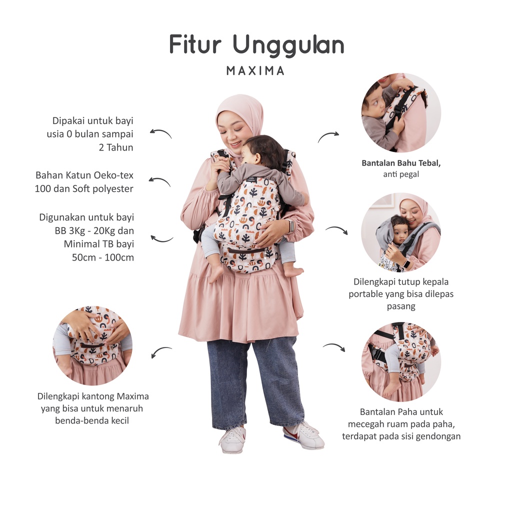 Gendongan Bayi Adjustable SSC nanababycarrier Maxima untuk newborn - 2 tahun