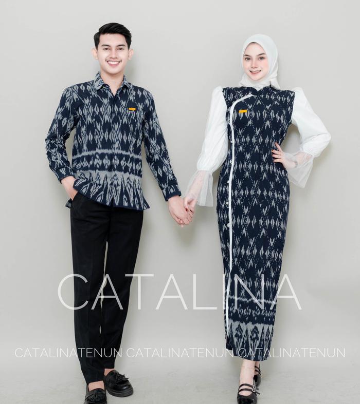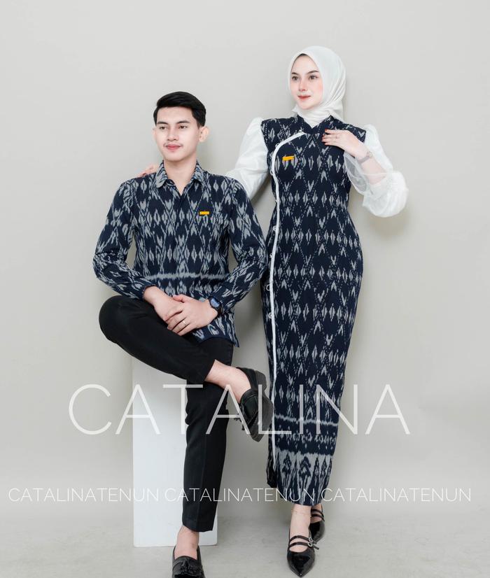Baju Tenun Baju Couple Tenun Jenar Navy Hitam - Baju Couple Kondangan - Tenun Couple Set - Kemeja&Gamis Kondangan - Baju