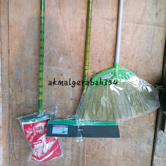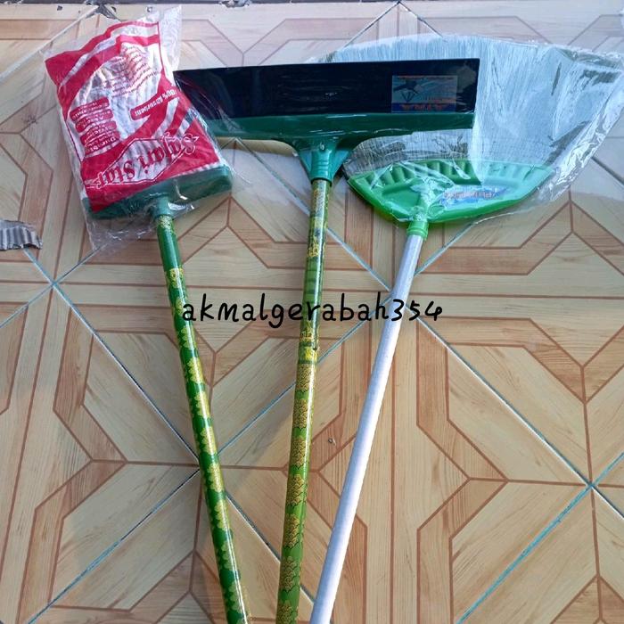 Paket Hemat Sapu 3 In 1 Sapu,Pel,Wipper Gagang Kayu