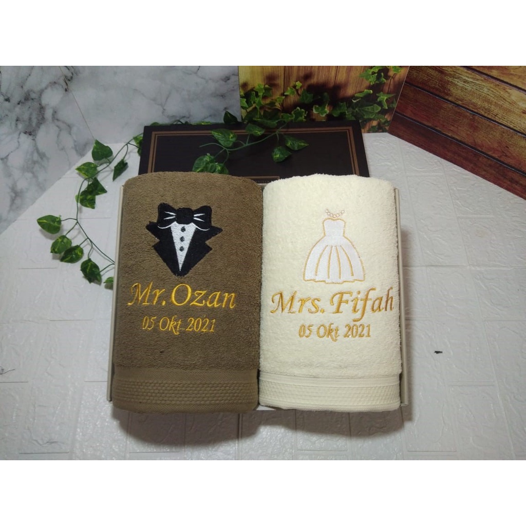 Paket Handuk Couple Wedding Gratis Bordir -Kado Handuk - Seserahan Handuk Couple