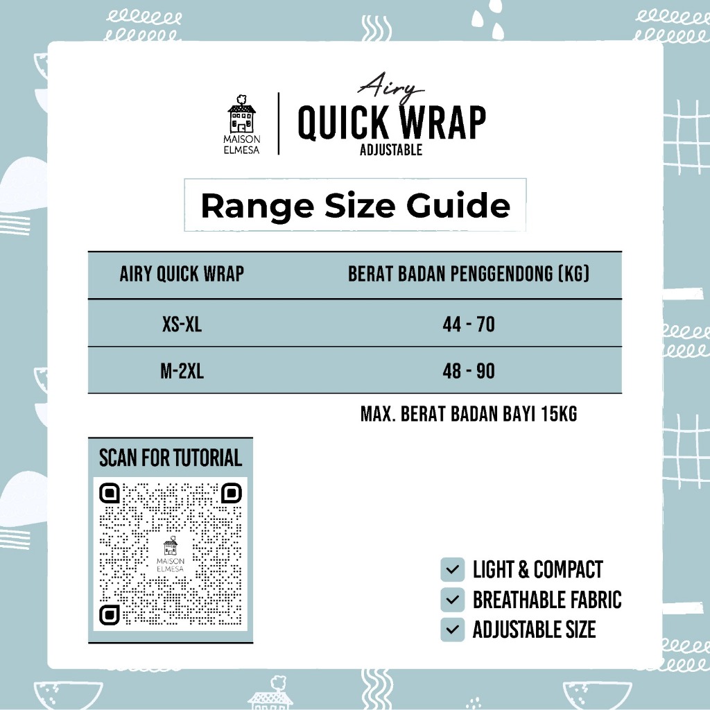 Maison Elmesa Airy Quick Wrap Gendongan Bayi M Shape Adjustable, High Quality