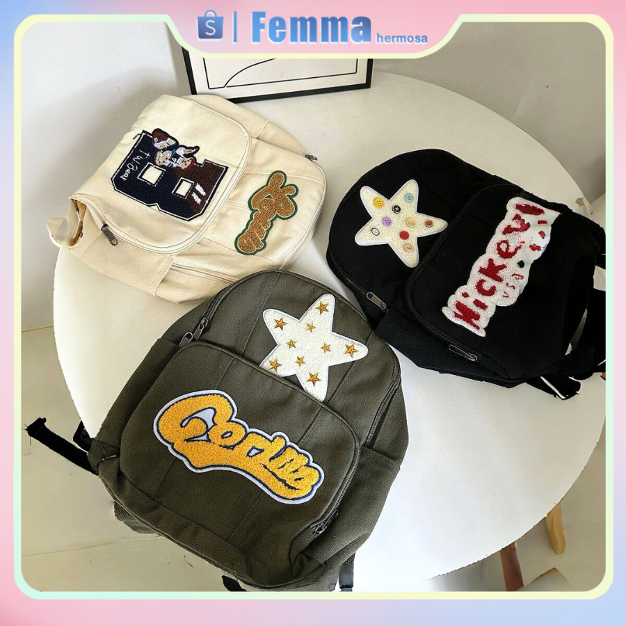 Fashion korea bag kuliah tas ransel laptop wanita Import backpack pentagram bordir tas bahu tas sekolah Meng rasa bintan