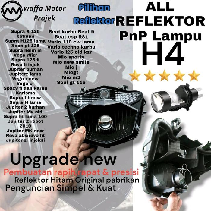 RETROFIT REFLEKTOR PLUS MIKA LAMPU DEPAN COSTUM DUDUKAN LAMPU H4 UNTUK SEMUA MOTOR BEBEK MATIC - BEAT KARBU