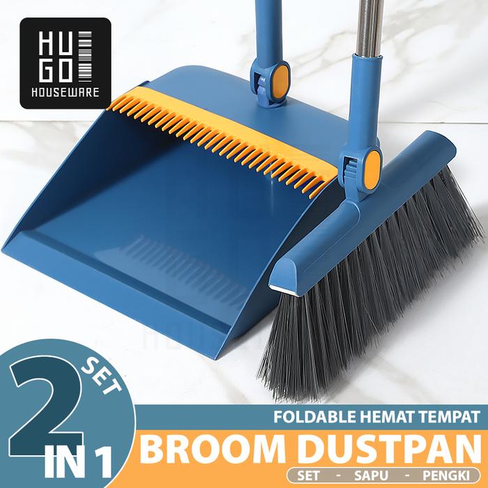 Hugo Sapu Lantai Set Pengki Lipat Broom Set Dustpan Alat Pembersih Sapu Lantai - Putih