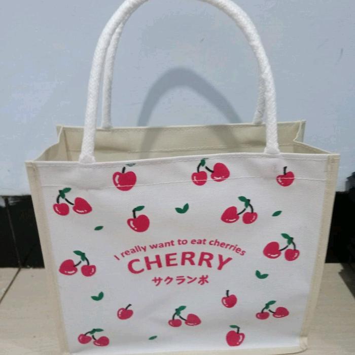 Totebag Sumbu Viral Bahan Canva Tas Jinjing - Cherry