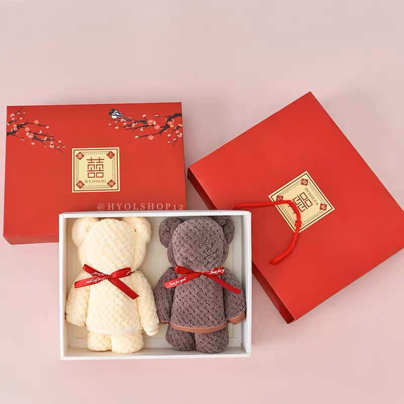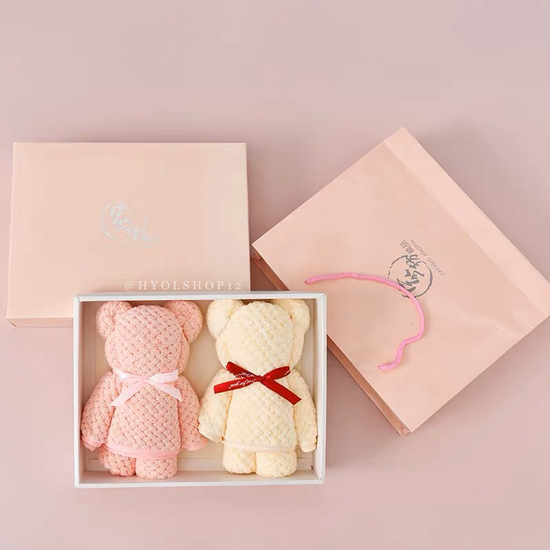 [HY.OLSHOP12] Handuk Mandi & Wajah Set 2in1 Motif Boneka Premium Cotton Tebal Halus Hadiah Souvenir Pernikahan Hamp