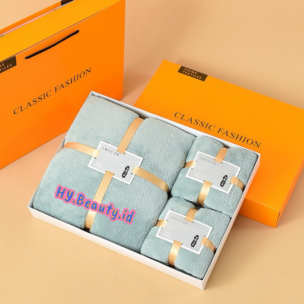 [HY.Beauty.id] Handuk Mandi & Wajah Premium 3in1 / Bath Towel Set Cotton Tebal Halus / Hadiah Souvenir Penikahan Gi