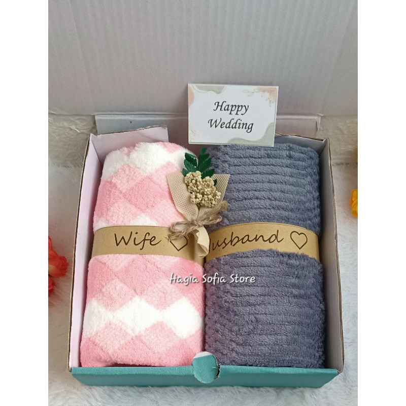 Hampers Pernikahan Handuk Couple Microfiber 100x50cm Lembut Kado Wedding